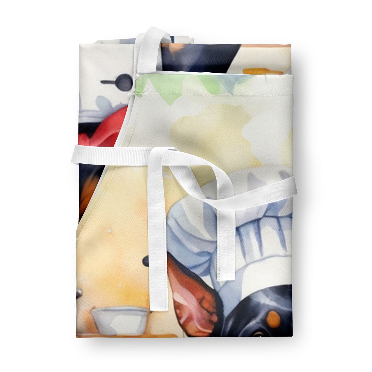 Apron featuring breed specific Doberman Pinscher artwork. Elevate your cooking, baking, and grilling experiences with our versatile Kitchen or BBQ Apron. This Bib Style apron isn't just limited to culinary activities - it also serves as an excellent baking apron, artist apron, server apron, gardening apron, or even a dog grooming apron. The apron showcases vibrant full-color artwork contributed by one of our talented artists, bringing a dash of style to your daily tasks. With dimensions of approximately 27"W x 30"H, it provides ample coverage to protect your clothing from spills and splashes. Our apron is meticulously crafted from 100% Ultra Spun Polyester, known for its durability and lightweight nature. The apron comes with white tie straps, ensuring a comfortable and adjustable fit for all. It's a perfect choice for kitchen apron enthusiasts, whether you are a woman or a man. Designed for easy maintenance, this apron is fully machine washable. The quick-drying polyester material actively reduces staining, keeping your apron looking fresh and new for longer. Our beautifully designed apron isn't just a functional kitchen accessory - it's a fashion statement in the culinary world!