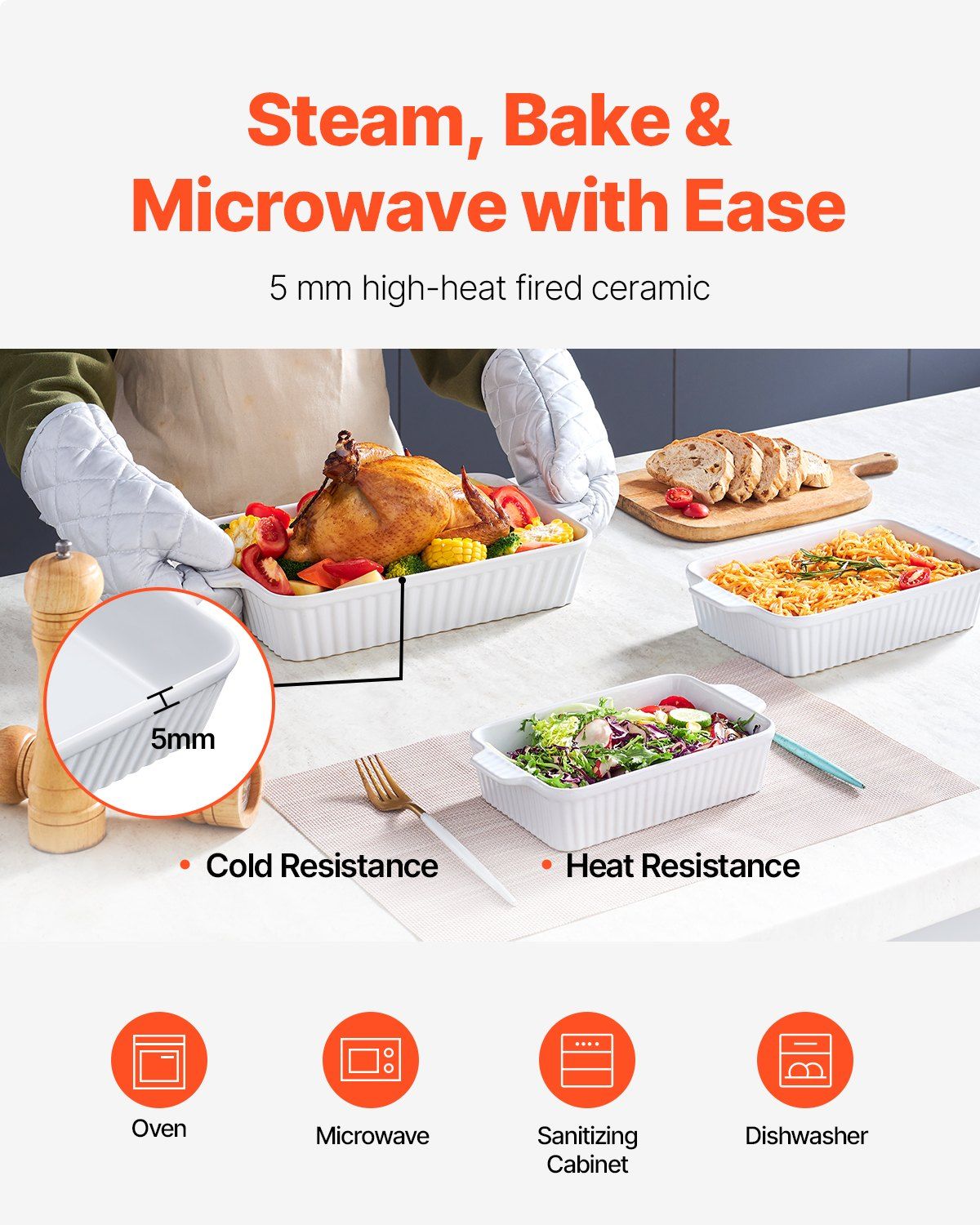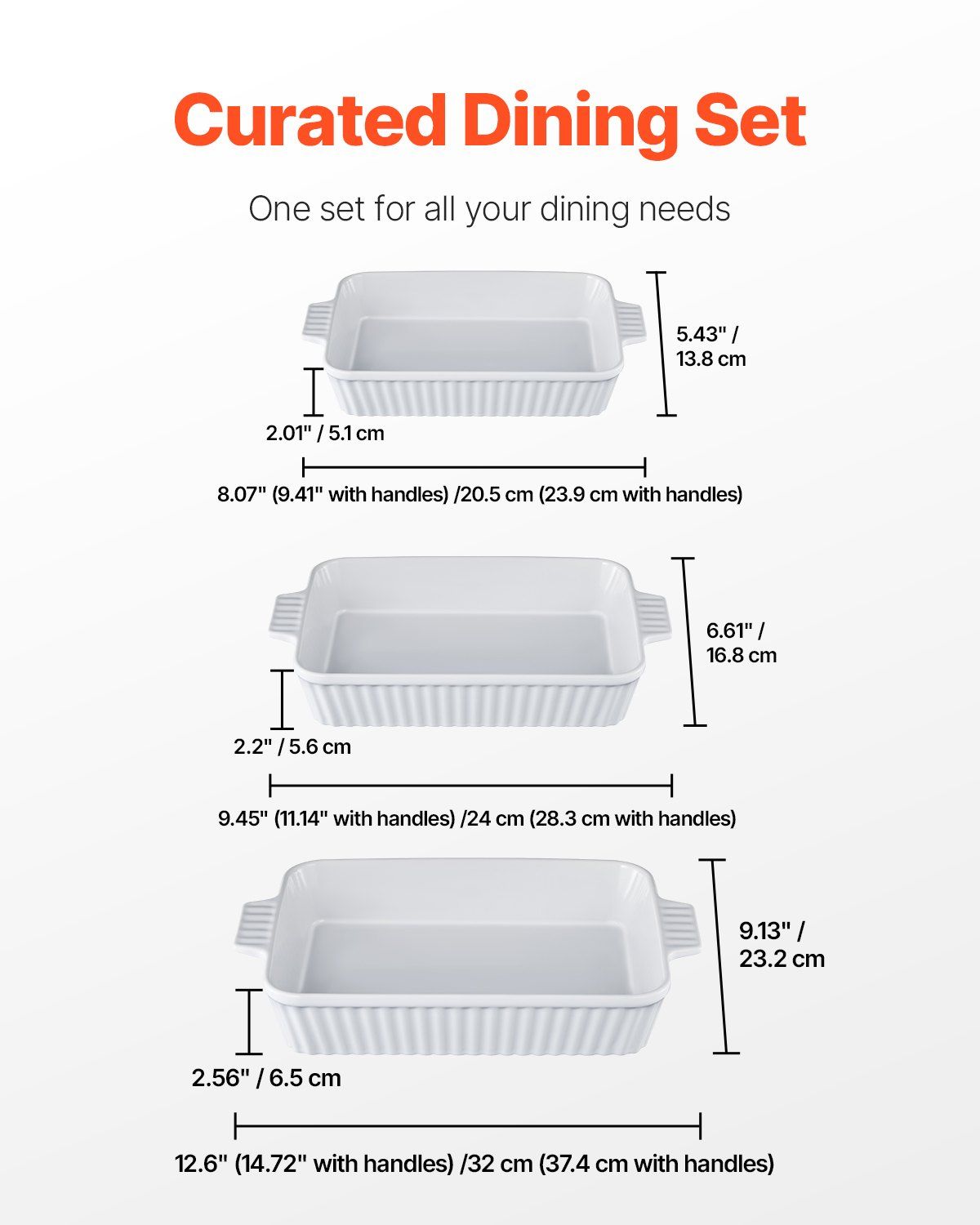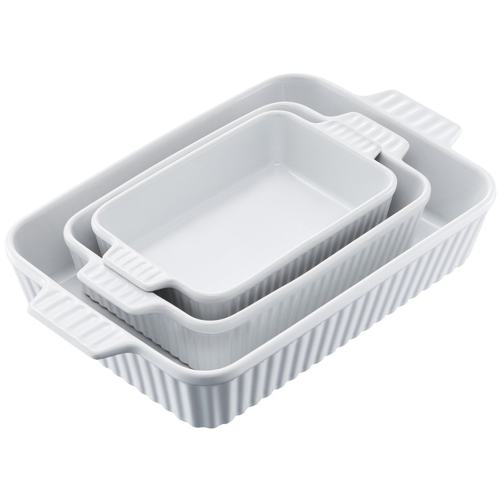 Ceramic Baking Dish 3 Pieces Rectangular Bakeware Set Deep for Baking White Ceramic Baking Dish 3 Pieces Rectangular Bakeware Set Deep for Baking White Ceramic Baking Dish 3 Pieces Rectangular Bakeware Set Deep for Baking White