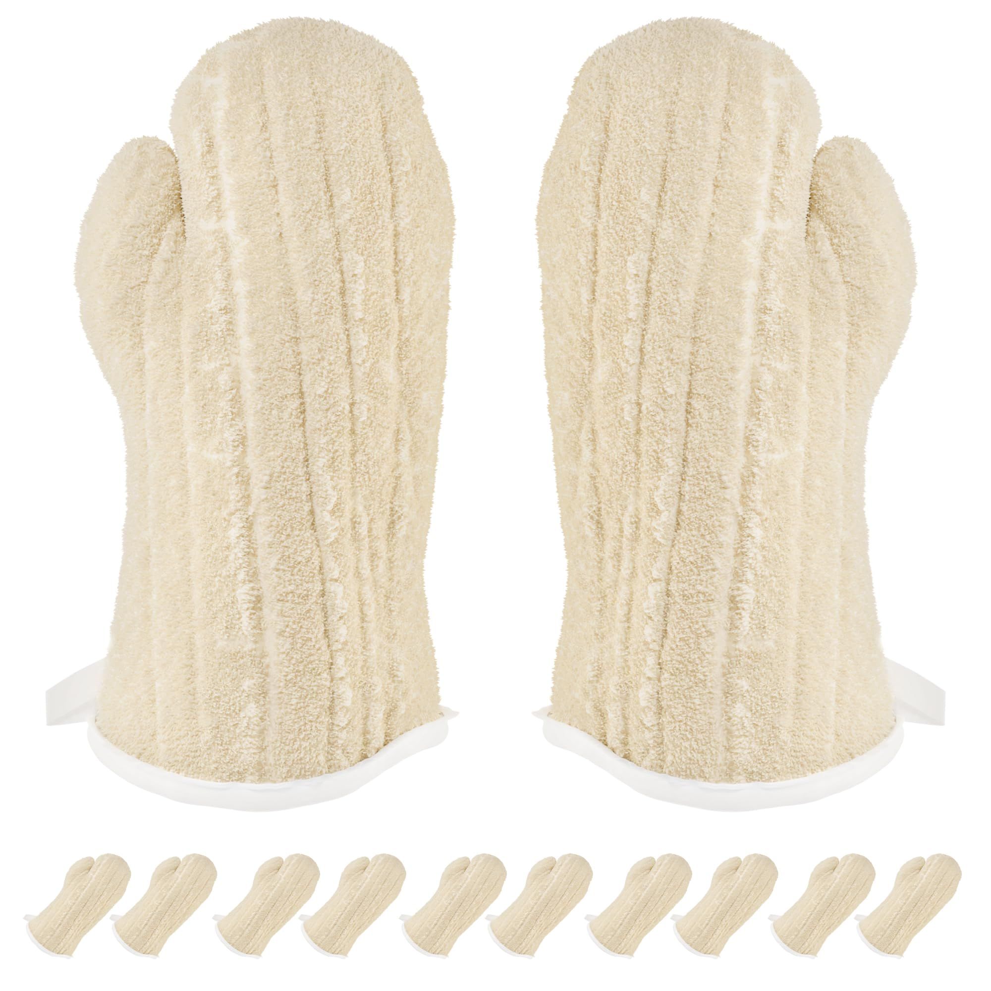 1.Beige Terry Cloth Heat Resistant Gloves 13 inch. 12 Pack (6 Pairs) of heat proof gloves are masterfully crafted from high-quality Terry cloth cotton, offering robust protection up to 260 C. Deal swiftly with kitchen tasks using cooking mittens. Cooking mitt perfectly complements culinary prowess.