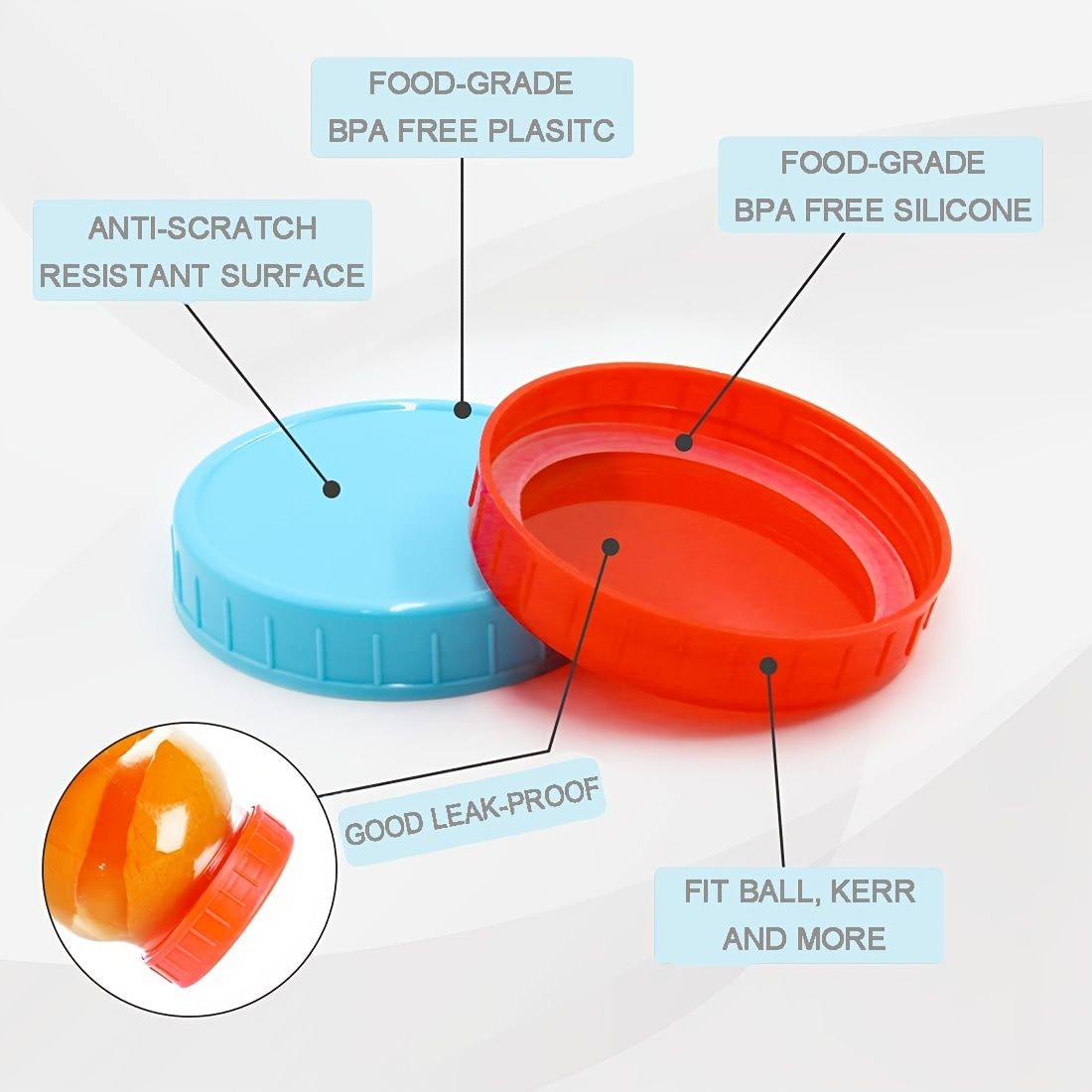 Home > 4Pcs Colored Plastic Mason Jar Lids Fits Ball; Kerr & More; Leak-Proof Storage Caps For Mason; Canning Jars