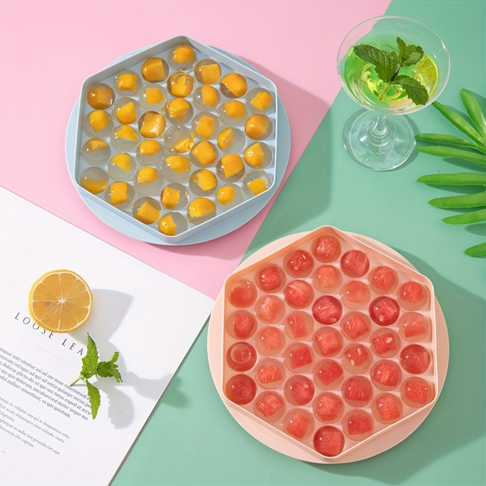 1pc; Hexagon Round Ice Cube Tray With Lid; Mini Circle Ice Ball Maker Mold For Freezer; 37pcs Sphere Ice Chilling Cocktail Whiskey Tea & Coffee